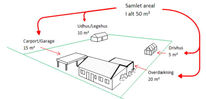 Det betyder, at det som udgangspunkt ikke længere kræver ansøgning om byggetilladelse eller anmeldelse til kommunen at opføre garager, carporte, overdækket arealer/terrasser, udhuse og lignende bygninger, når bygningerne tilsammen ikke overstiger et areal på 50 m².