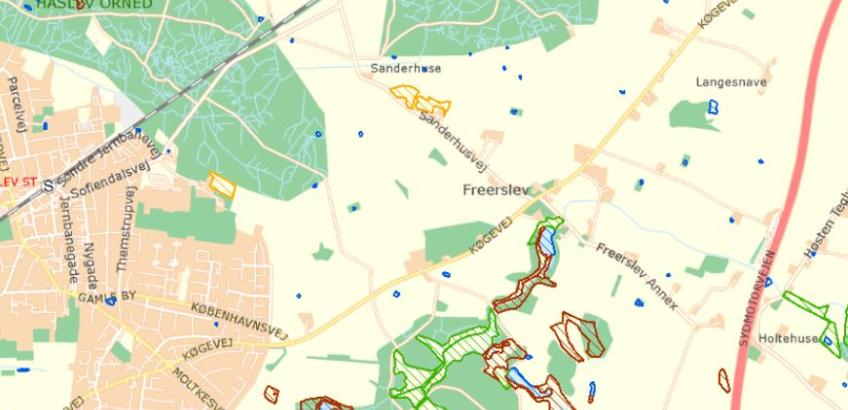 Det er muligt at se natur- og miljøoplysninger for det meste af Danmark.
